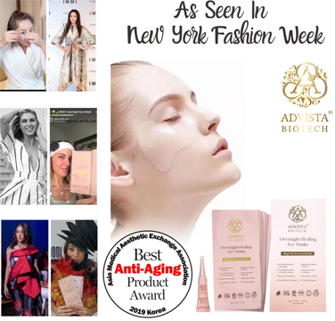 Advista BioTech Eye Masks debuted in September 2019 during Couture Fashion Week New York. Famed designer Andres Aquino introduced the gel masks at his fashion show, and guests were fascinated with the healing gel eye masks and the results they received. The innovative eye masks are the ultimate solution to skin problems under the eyes. Advista BioTech Eye Masks employ the concept of Silicone Gel Sheeting (SGC). The silicone sheets cover the scar area under the eyes allowing water to stay inside the skin. The hydrated skin enables cells to be renewed and healthy. Further innovation makes the sheets completely water-soluble with highest bioavailability. They provide both nutrition and water to the eye area to revive wrinkled, sagging, and damaged skin, making it look renewed in just a few weeks. Advista BioTech Eye Masks have not only won over celebrity customers, but were recently honored with the Best Anti-Aging Product Award in 2019 at the Asia Medical Aesthetic Exchange Association conference in Korea. The innovative product is one of the beauty secrets of fashion model Radi Budyounova. The world-famous model is a brand ambassador for Advista BioTech Eye Masks and uses the product to improve the look of her skin. Visit Advista BioTech on Instagram and Facebook.